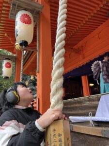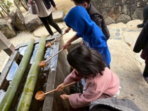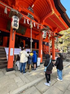 初詣では、⛩️備後一宮吉備津神社に行きました。 みんなで手を清めて長い階段を上り、
