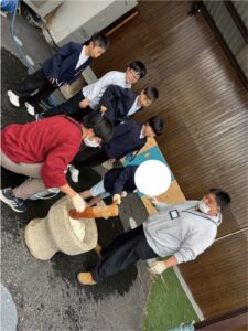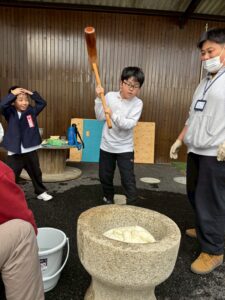 蒸したもち米から作る本格的な餅つきをしました。