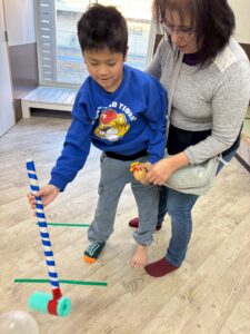 ダルマ落としでは頭が落ちないようにチャレンジ。