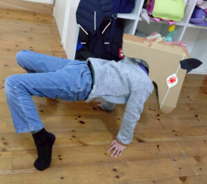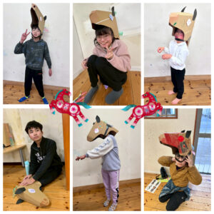 馬のかぶりものを作って、